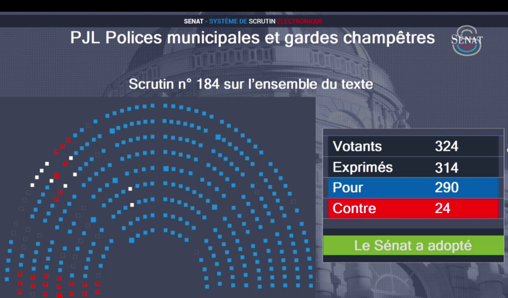 Le projet de loi a été adopté en première lecture au Sénat par 290 voix POUR et 24 voix CONTRE. Il appartient désormais à l’Assemblée nationale de se prononcer sur ce texte.